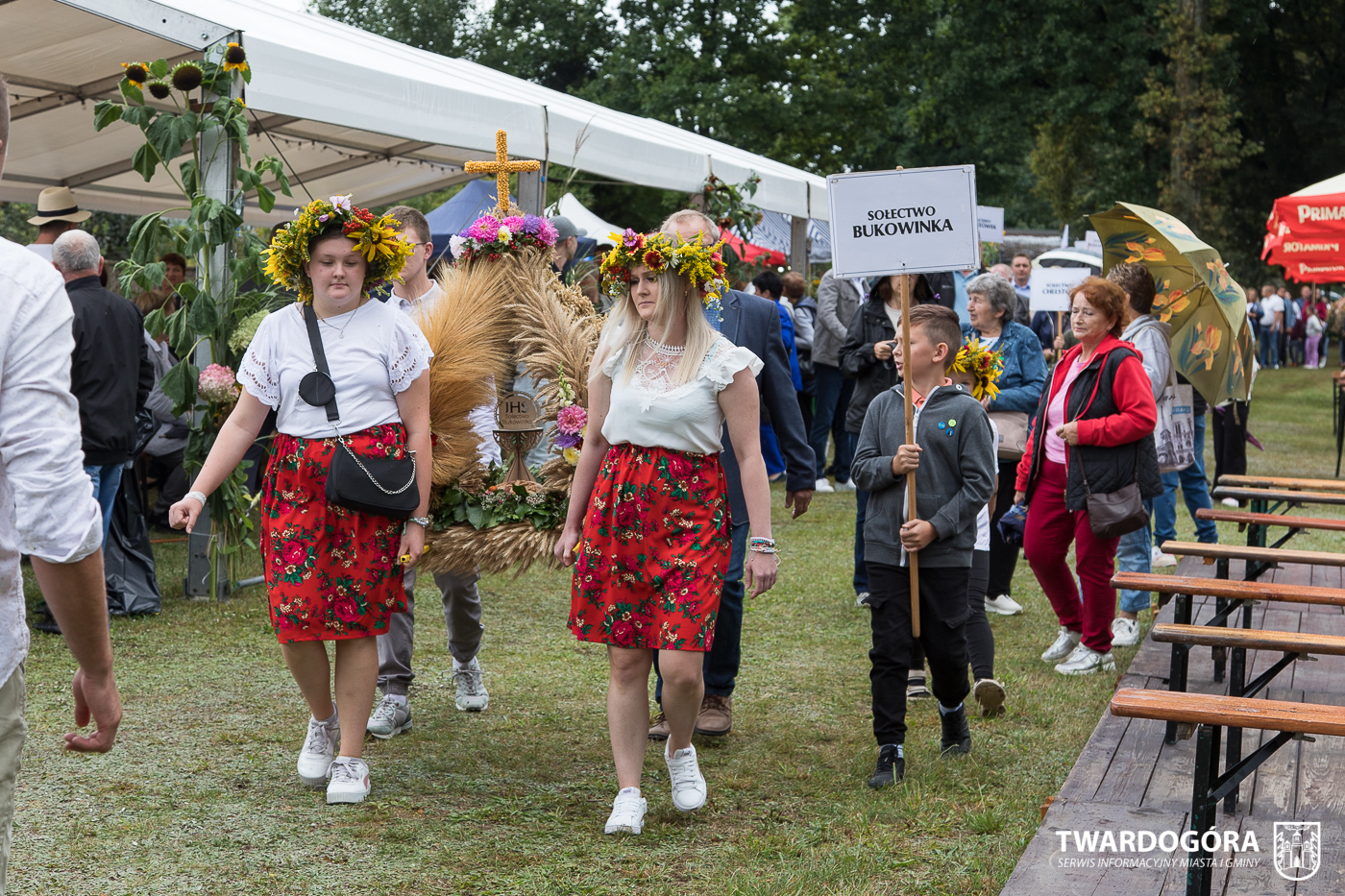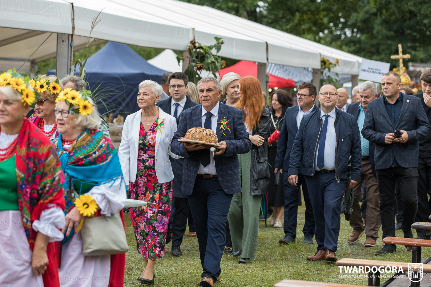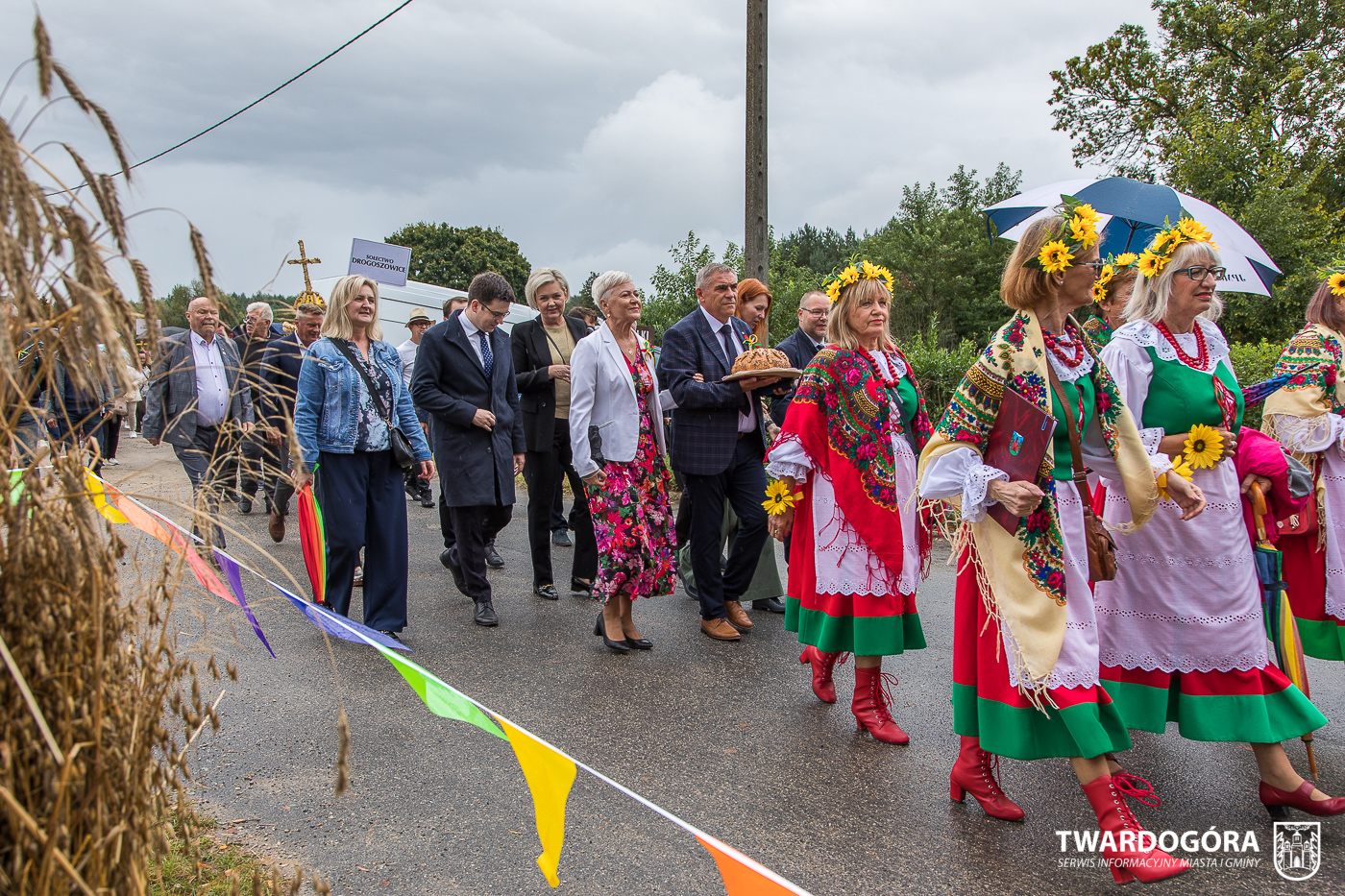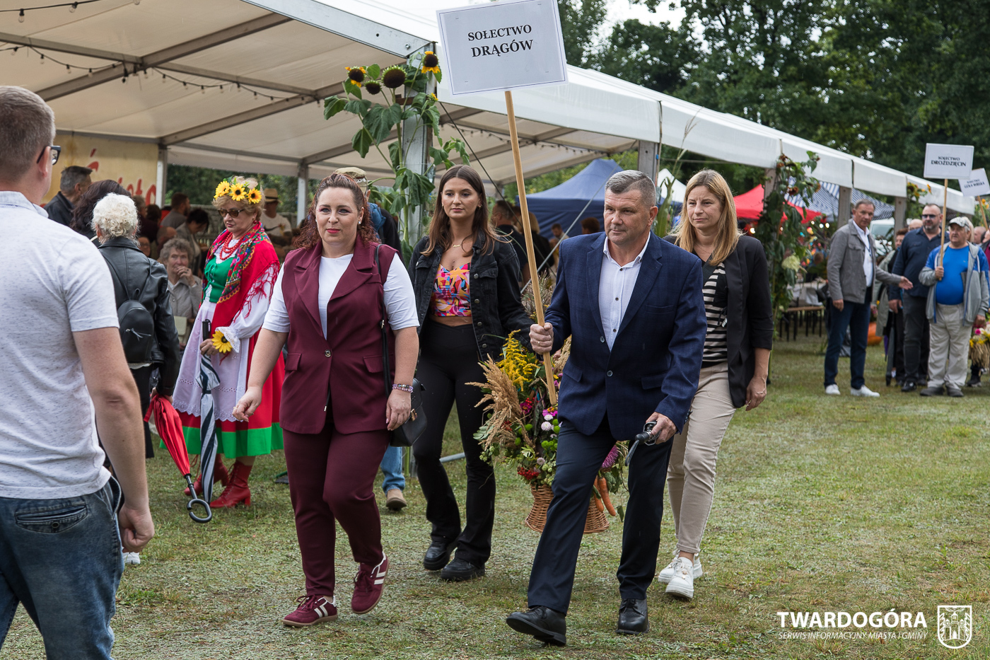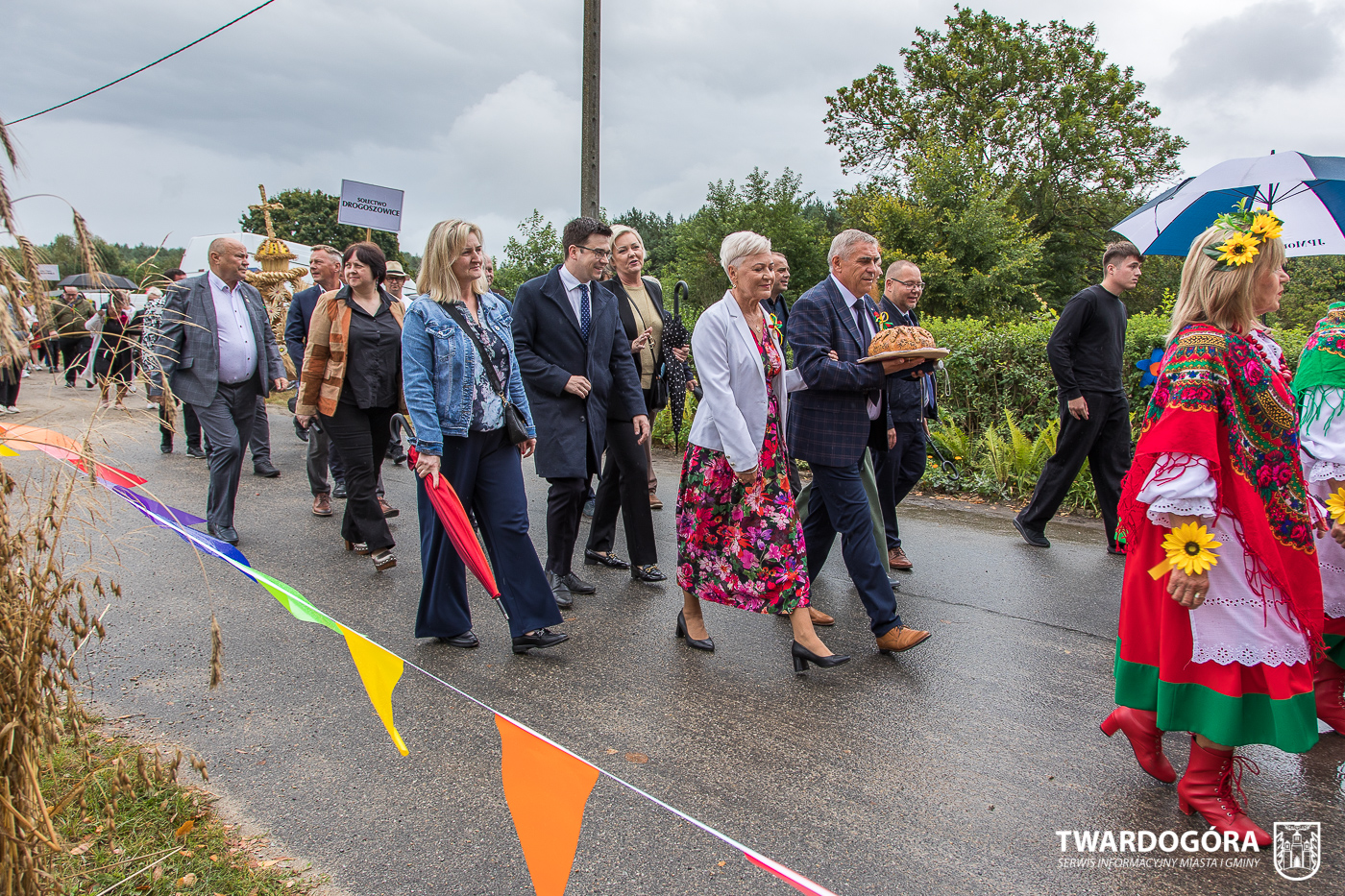 Obchody rozpoczął korowód, który wyruszył spod krzyża w Drogoszowicach. Na jego czele szli Starostowie Dożynek – Irena i Andrzej Zarówni, a także gospodarz wydarzenia, Burmistrz Miasta i Gminy Twardogóra Paweł Czuliński. Korowód prowadziła kapela Twardograje, radny Rady Miejskiej w Twardogórze Daniel Nicpoń, który kierował traktorem oraz Zespół Pieśni i Tańca Skorynianie działający przy Twardogórskim Pałacu Kultury – Centrum Aktywności Społecznej. Wśród uczestników nie zabrakło delegacji poszczególnych sołectw, działkowców, pszczelarzy, wędkarzy oraz przedstawicieli Oddziału Rejonowego Polskiego Związku Emerytów, Rencistów i Inwalidów w Twardogórze. Razem z nimi maszerowali przedstawiciele gminnego samorządu oraz jednostek organizacyjnych.