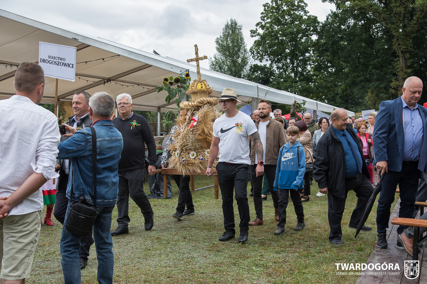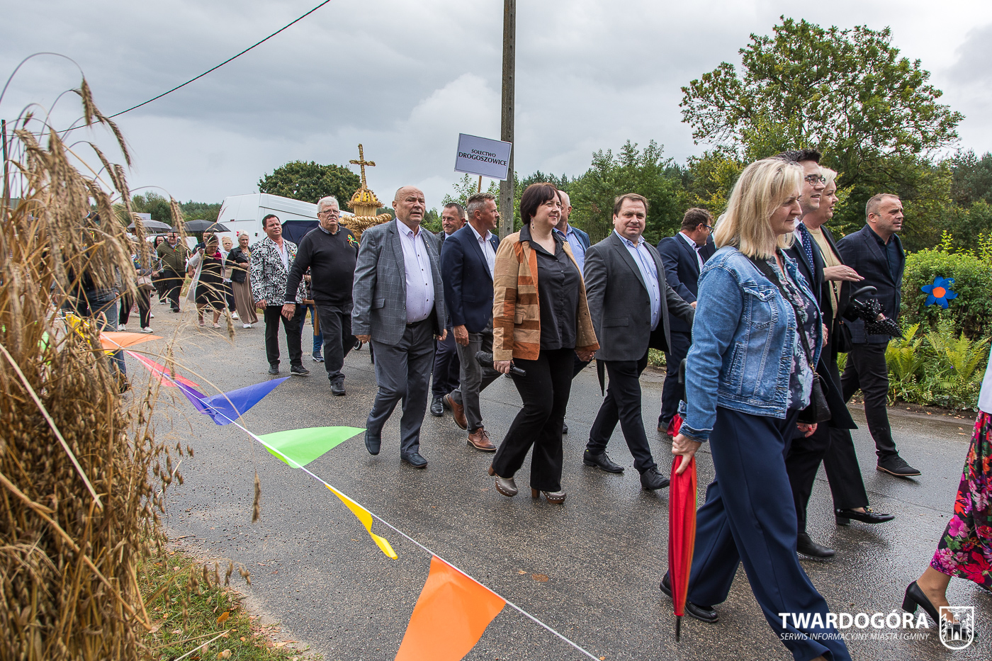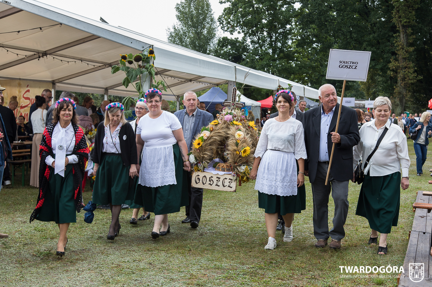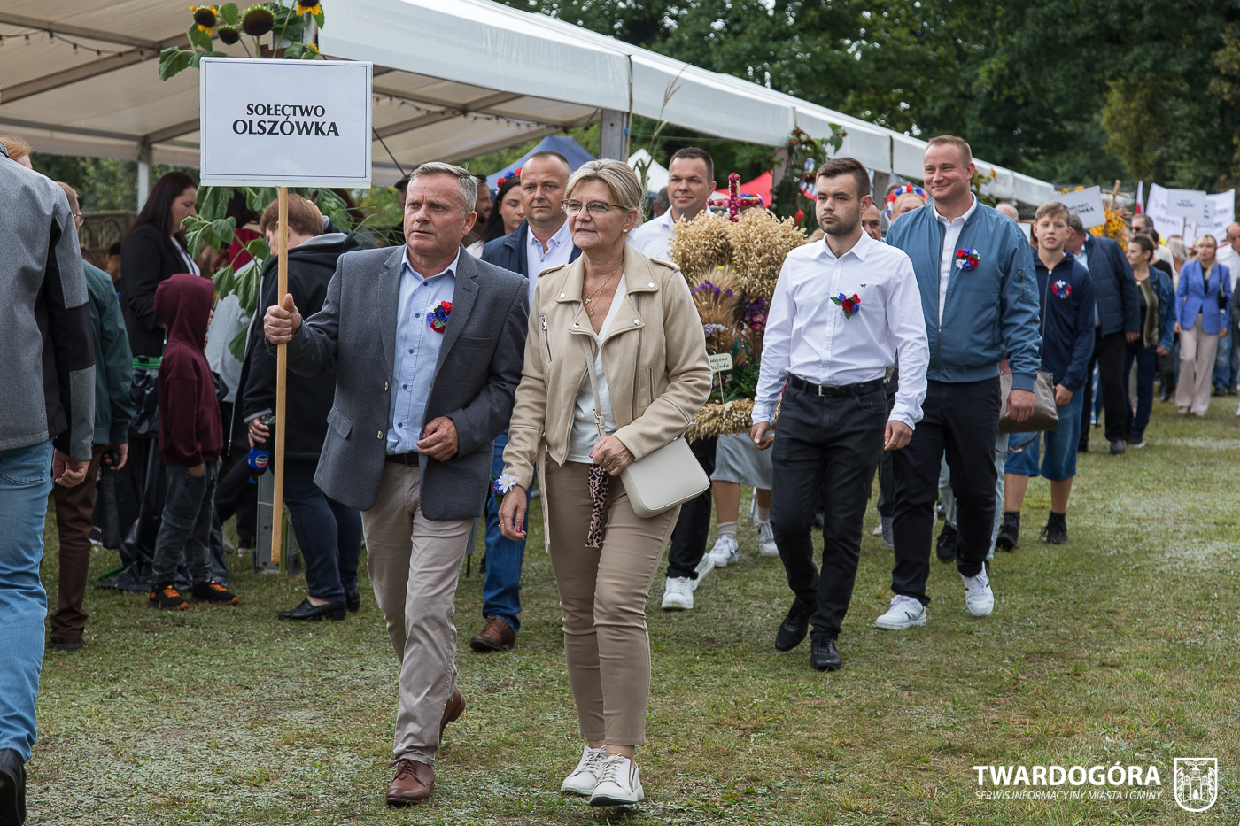 Obchody rozpoczął korowód, który wyruszył spod krzyża w Drogoszowicach. Na jego czele szli Starostowie Dożynek – Irena i Andrzej Zarówni, a także gospodarz wydarzenia, Burmistrz Miasta i Gminy Twardogóra Paweł Czuliński. Korowód prowadziła kapela Twardograje, radny Rady Miejskiej w Twardogórze Daniel Nicpoń, który kierował traktorem oraz Zespół Pieśni i Tańca Skorynianie działający przy Twardogórskim Pałacu Kultury – Centrum Aktywności Społecznej. Wśród uczestników nie zabrakło delegacji poszczególnych sołectw, działkowców, pszczelarzy, wędkarzy oraz przedstawicieli Oddziału Rejonowego Polskiego Związku Emerytów, Rencistów i Inwalidów w Twardogórze. Razem z nimi maszerowali przedstawiciele gminnego samorządu oraz jednostek organizacyjnych.