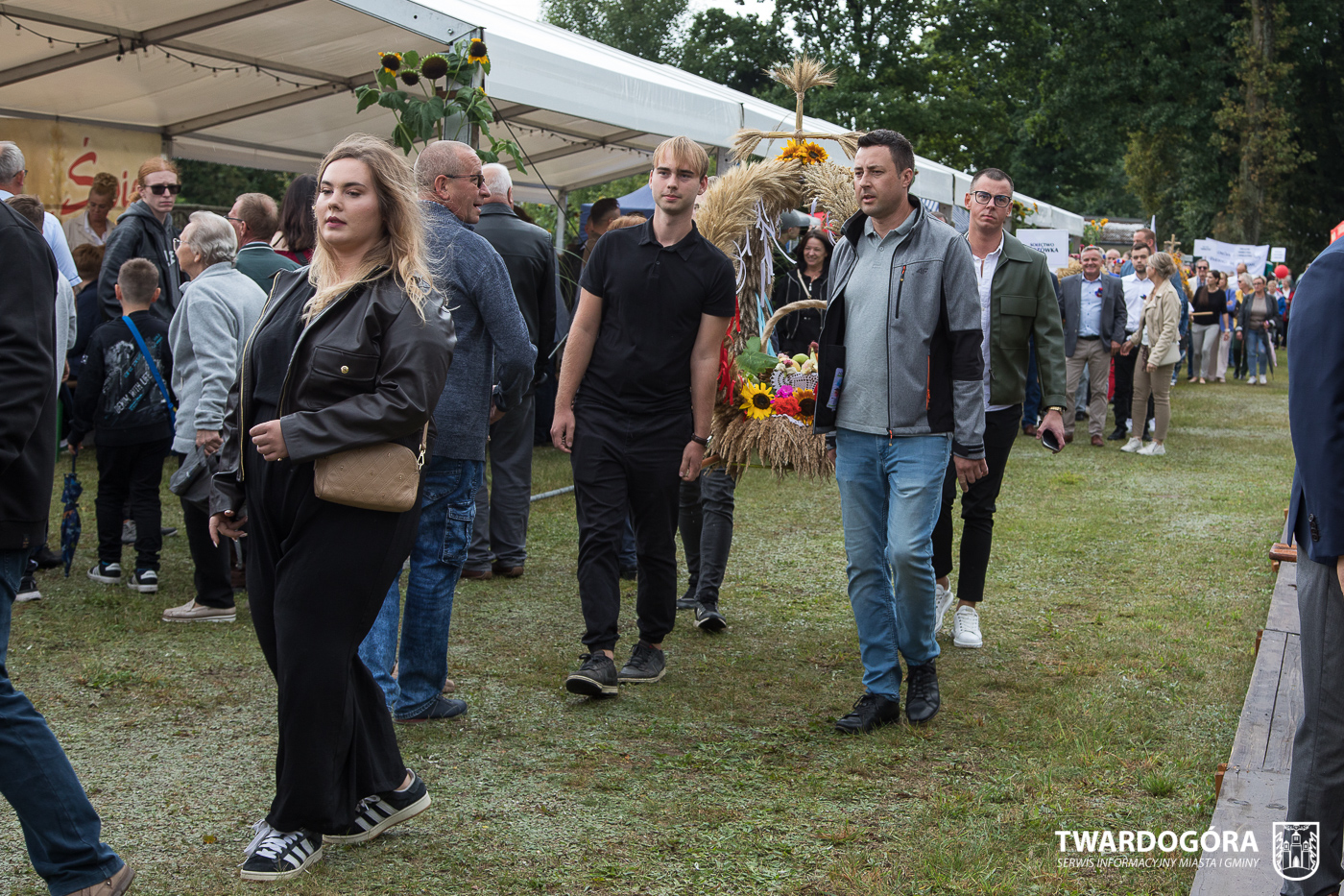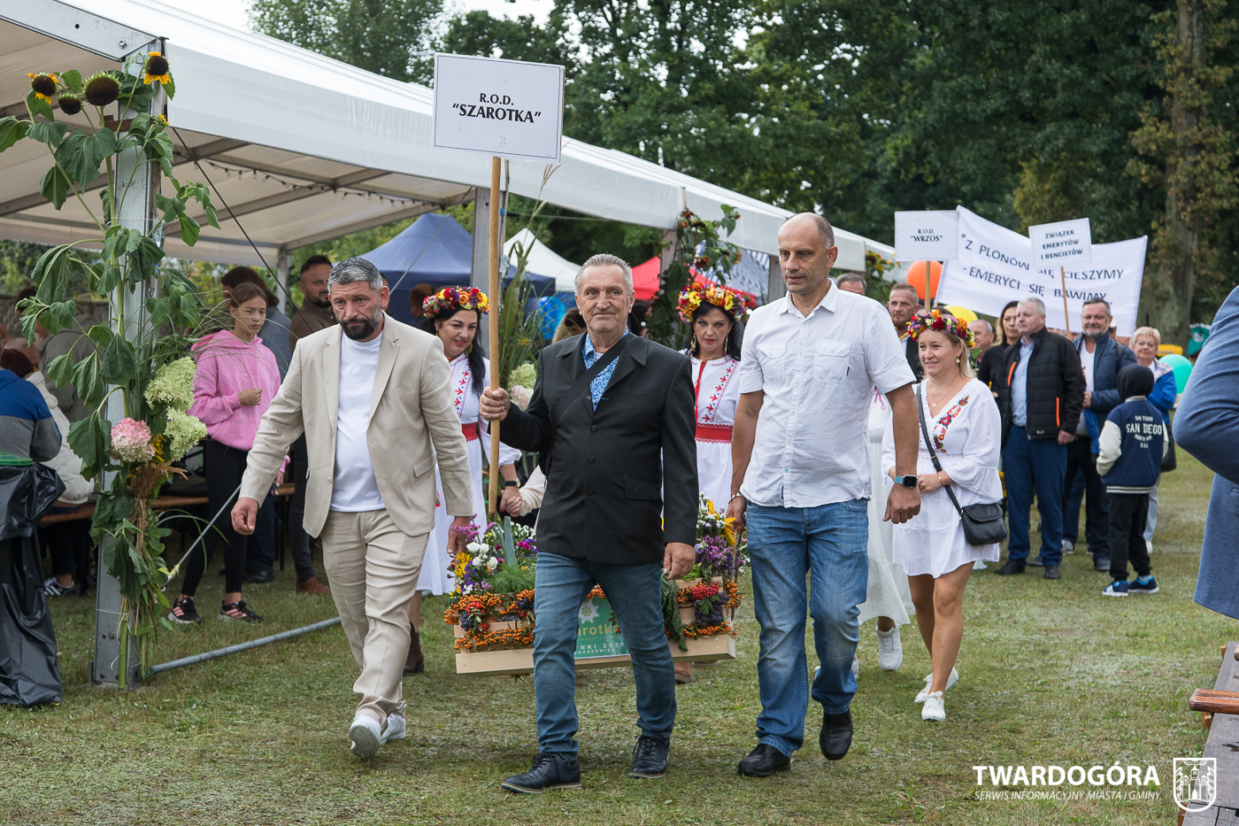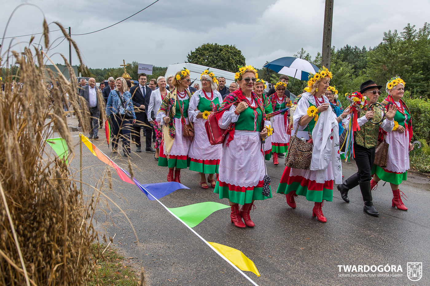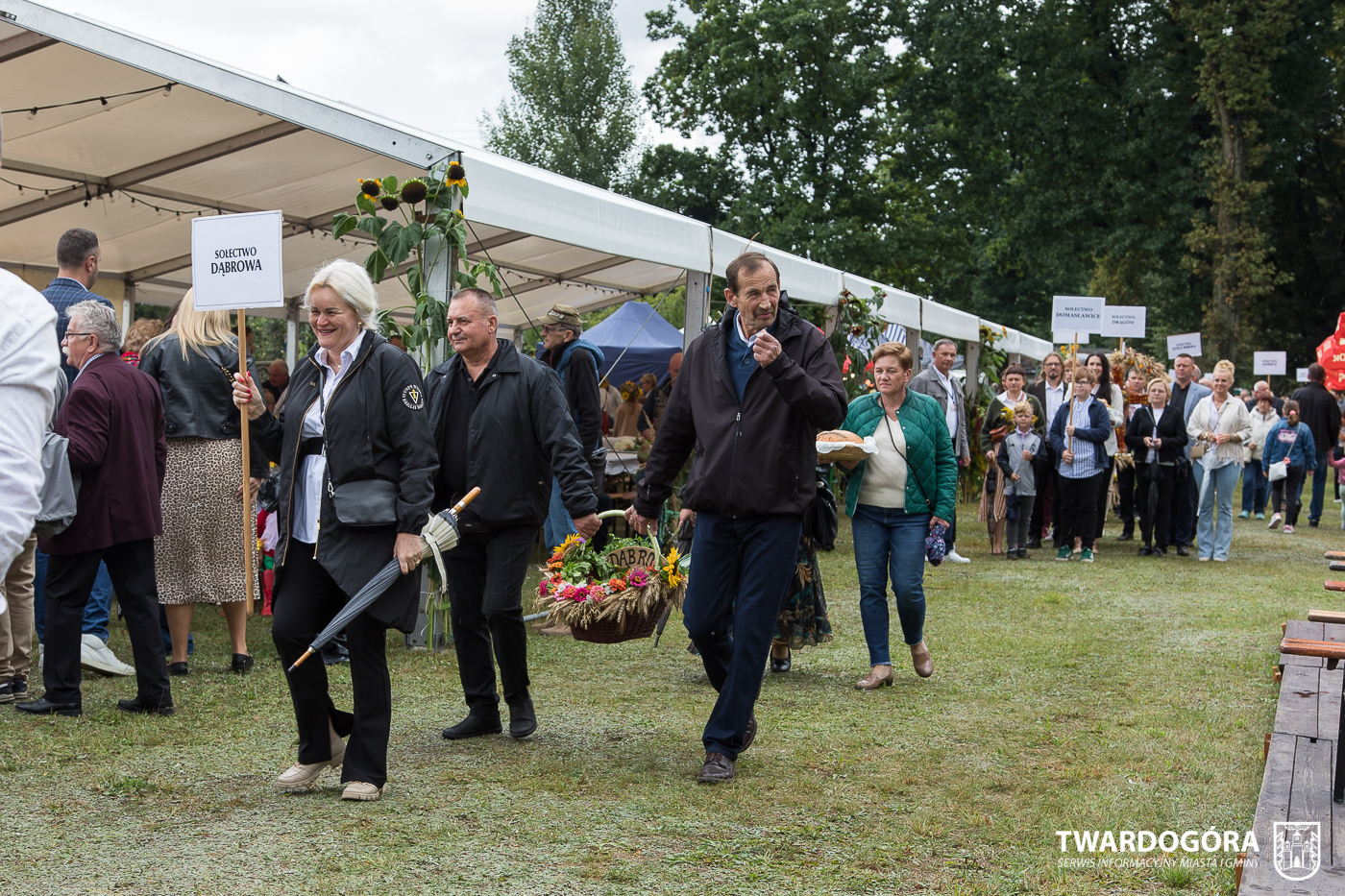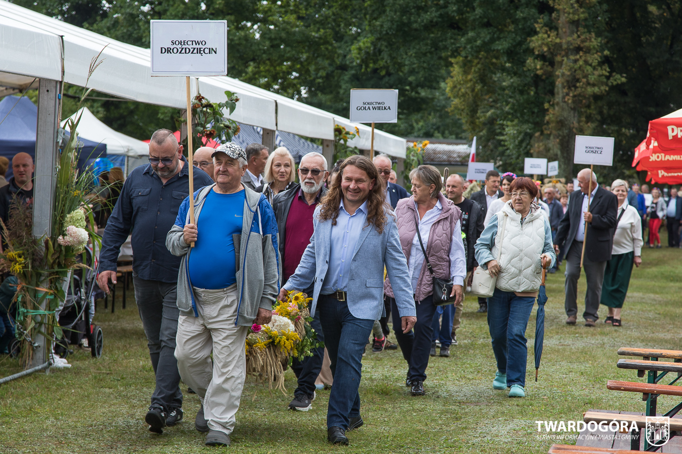 Obchody rozpoczął korowód, który wyruszył spod krzyża w Drogoszowicach. Na jego czele szli Starostowie Dożynek – Irena i Andrzej Zarówni, a także gospodarz wydarzenia, Burmistrz Miasta i Gminy Twardogóra Paweł Czuliński. Korowód prowadziła kapela Twardograje, radny Rady Miejskiej w Twardogórze Daniel Nicpoń, który kierował traktorem oraz Zespół Pieśni i Tańca Skorynianie działający przy Twardogórskim Pałacu Kultury – Centrum Aktywności Społecznej. Wśród uczestników nie zabrakło delegacji poszczególnych sołectw, działkowców, pszczelarzy, wędkarzy oraz przedstawicieli Oddziału Rejonowego Polskiego Związku Emerytów, Rencistów i Inwalidów w Twardogórze. Razem z nimi maszerowali przedstawiciele gminnego samorządu oraz jednostek organizacyjnych.