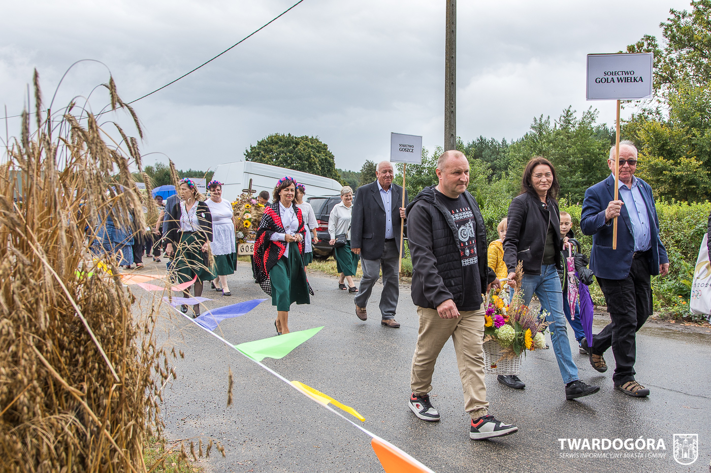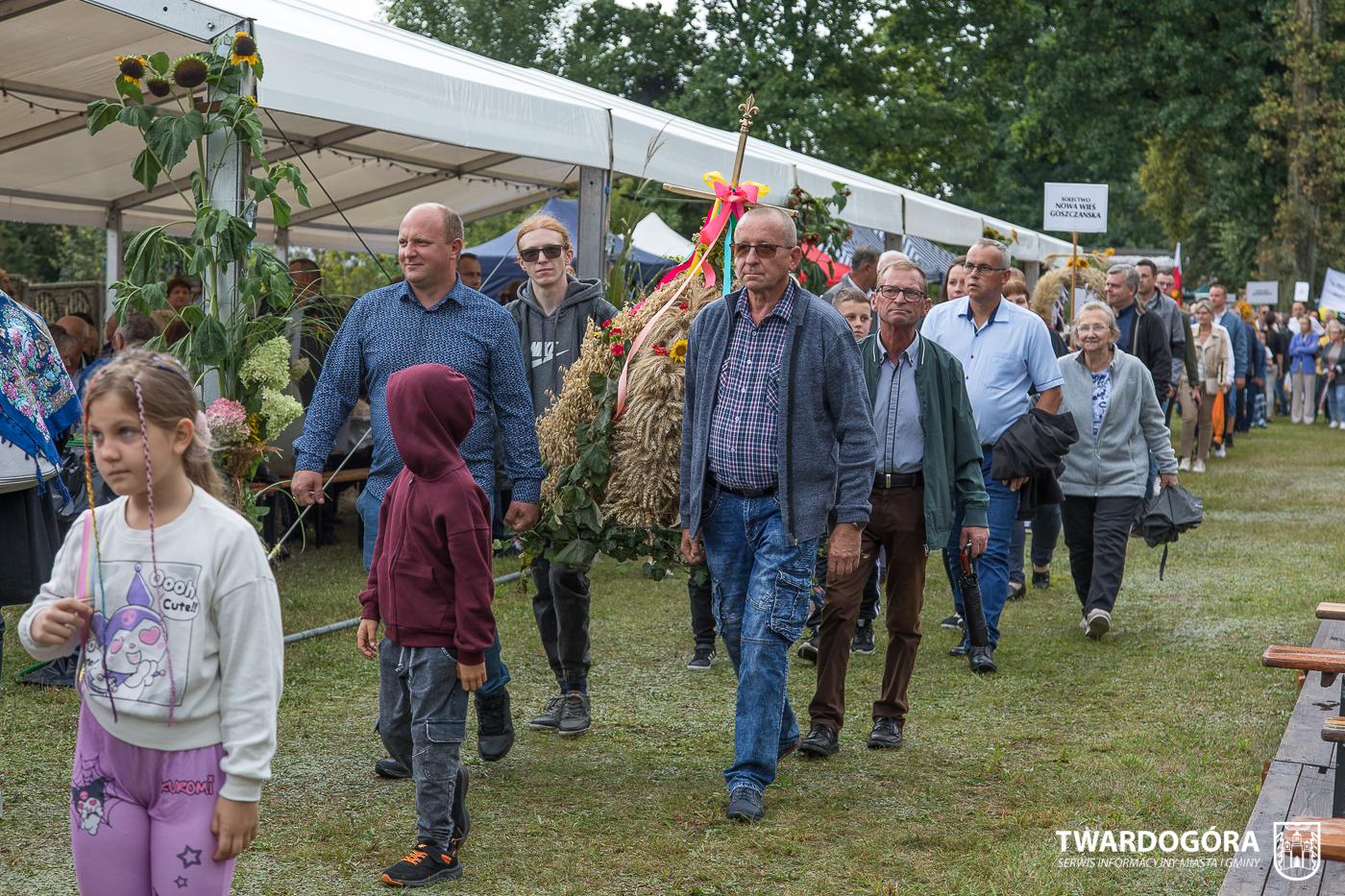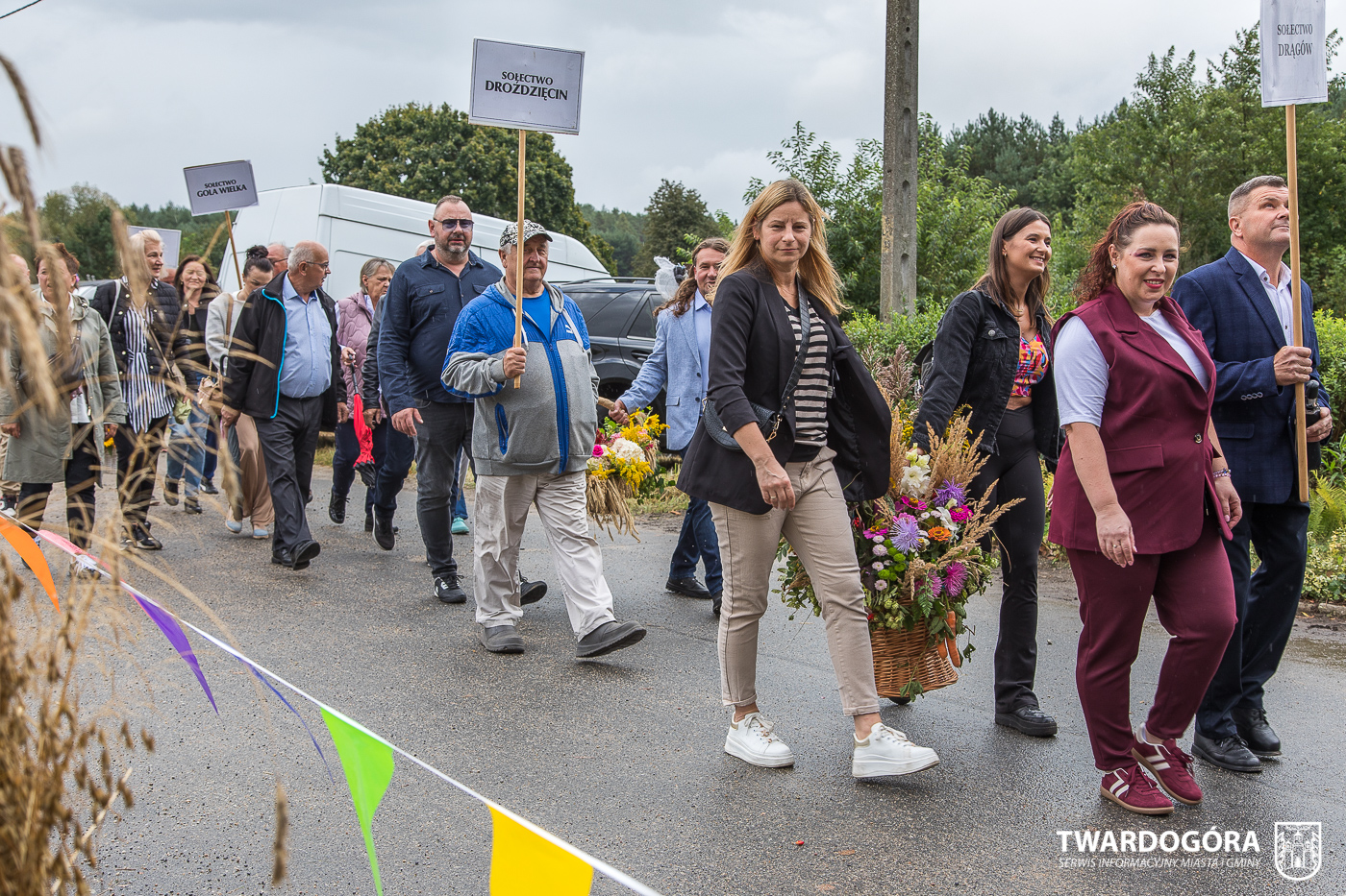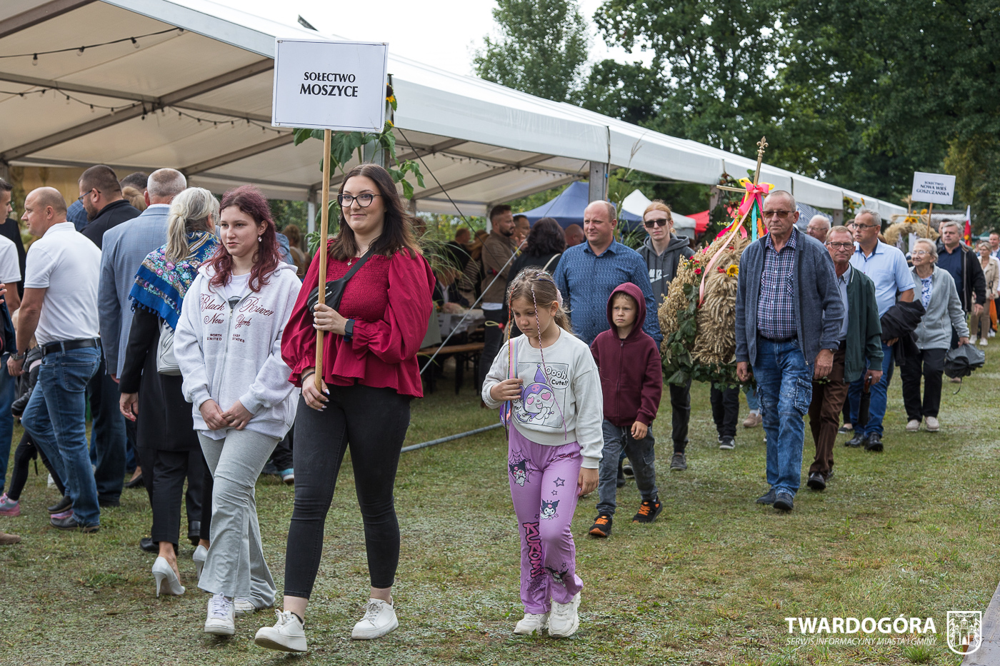 Obchody rozpoczął korowód, który wyruszył spod krzyża w Drogoszowicach. Na jego czele szli Starostowie Dożynek – Irena i Andrzej Zarówni, a także gospodarz wydarzenia, Burmistrz Miasta i Gminy Twardogóra Paweł Czuliński. Korowód prowadziła kapela Twardograje, radny Rady Miejskiej w Twardogórze Daniel Nicpoń, który kierował traktorem oraz Zespół Pieśni i Tańca Skorynianie działający przy Twardogórskim Pałacu Kultury – Centrum Aktywności Społecznej. Wśród uczestników nie zabrakło delegacji poszczególnych sołectw, działkowców, pszczelarzy, wędkarzy oraz przedstawicieli Oddziału Rejonowego Polskiego Związku Emerytów, Rencistów i Inwalidów w Twardogórze. Razem z nimi maszerowali przedstawiciele gminnego samorządu oraz jednostek organizacyjnych.