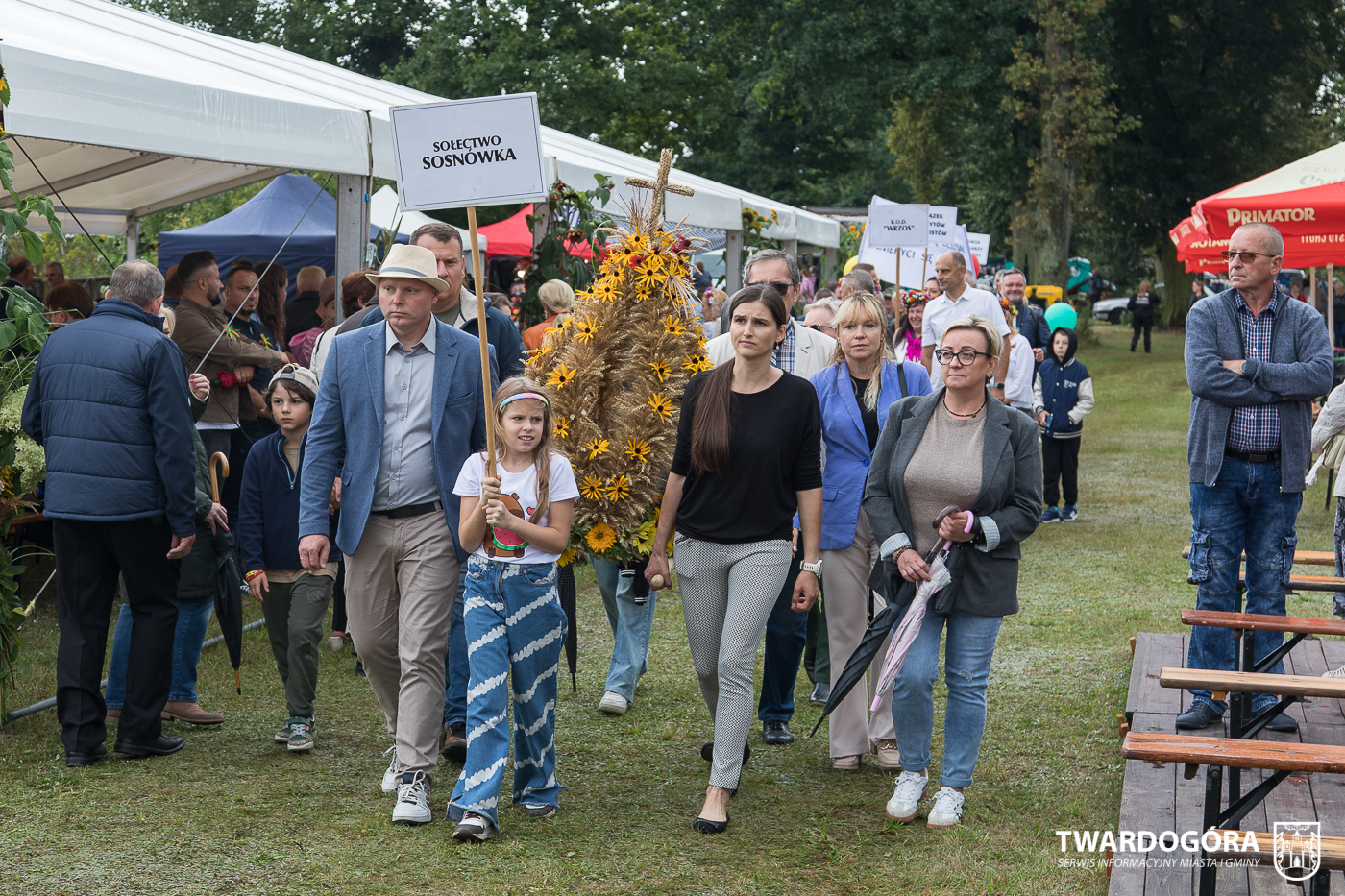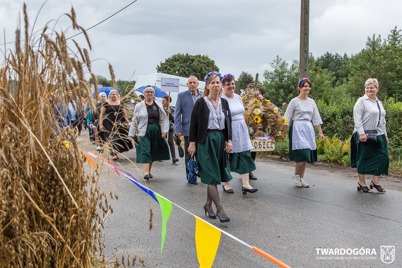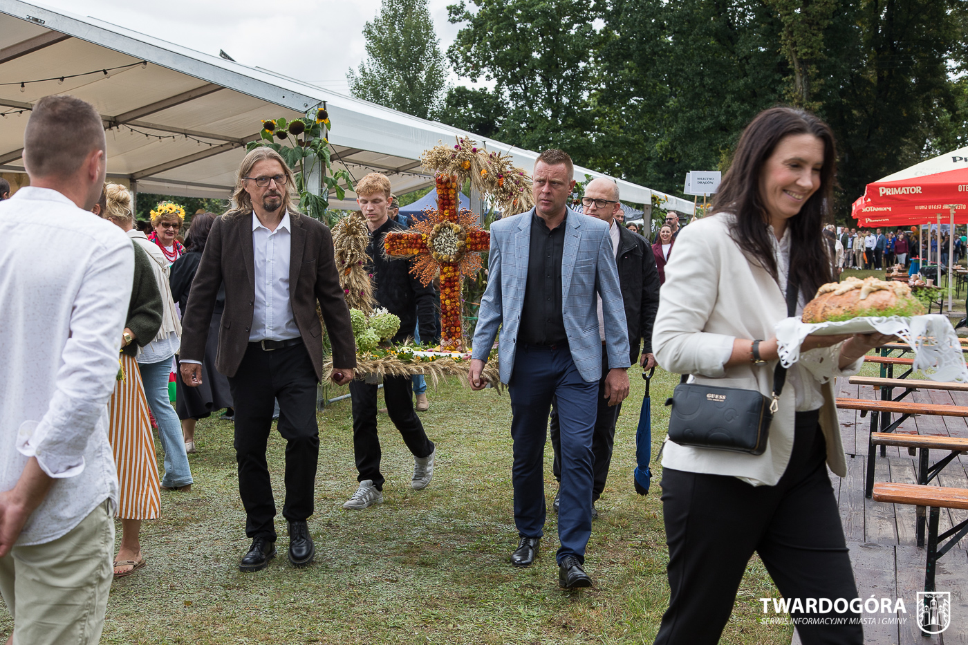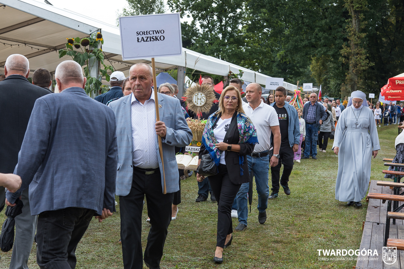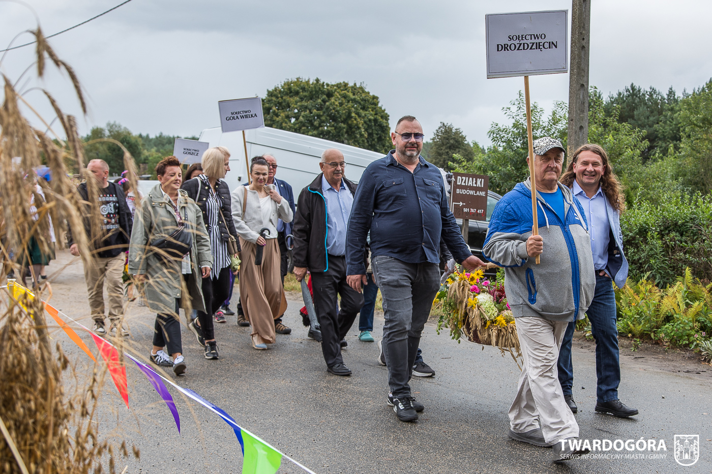 Obchody rozpoczął korowód, który wyruszył spod krzyża w Drogoszowicach. Na jego czele szli Starostowie Dożynek – Irena i Andrzej Zarówni, a także gospodarz wydarzenia, Burmistrz Miasta i Gminy Twardogóra Paweł Czuliński. Korowód prowadziła kapela Twardograje, radny Rady Miejskiej w Twardogórze Daniel Nicpoń, który kierował traktorem oraz Zespół Pieśni i Tańca Skorynianie działający przy Twardogórskim Pałacu Kultury – Centrum Aktywności Społecznej. Wśród uczestników nie zabrakło delegacji poszczególnych sołectw, działkowców, pszczelarzy, wędkarzy oraz przedstawicieli Oddziału Rejonowego Polskiego Związku Emerytów, Rencistów i Inwalidów w Twardogórze. Razem z nimi maszerowali przedstawiciele gminnego samorządu oraz jednostek organizacyjnych.