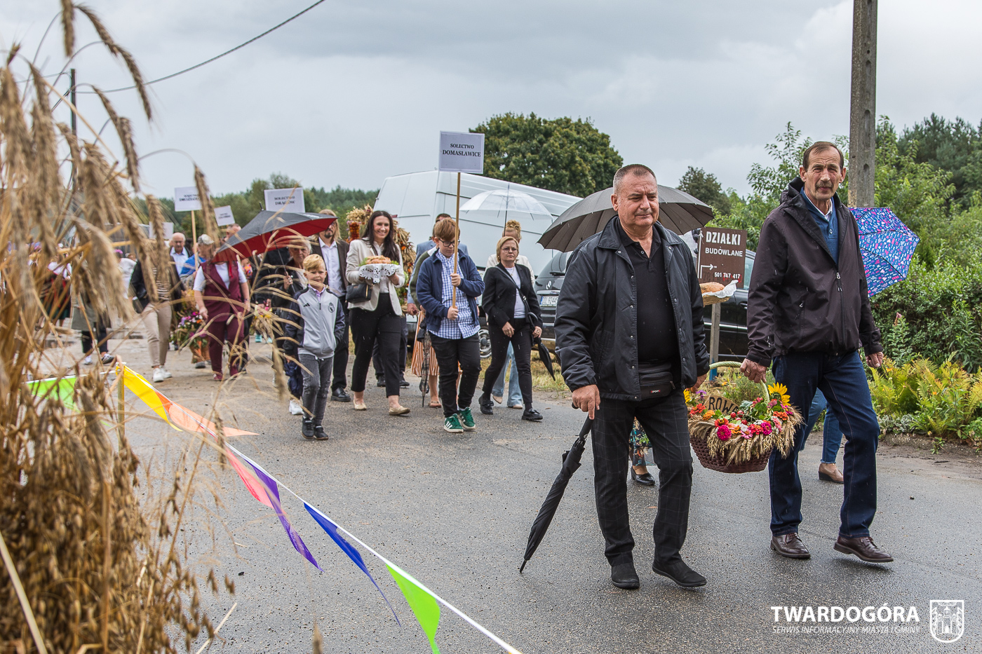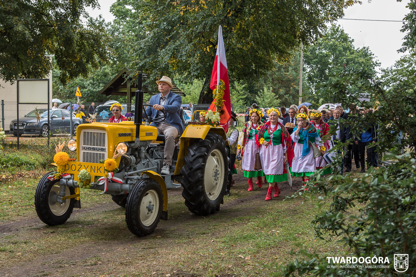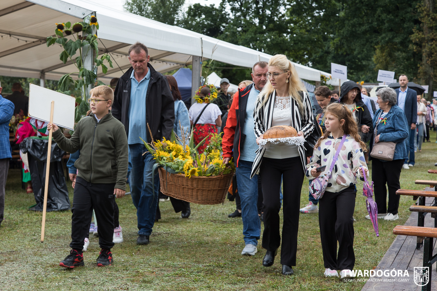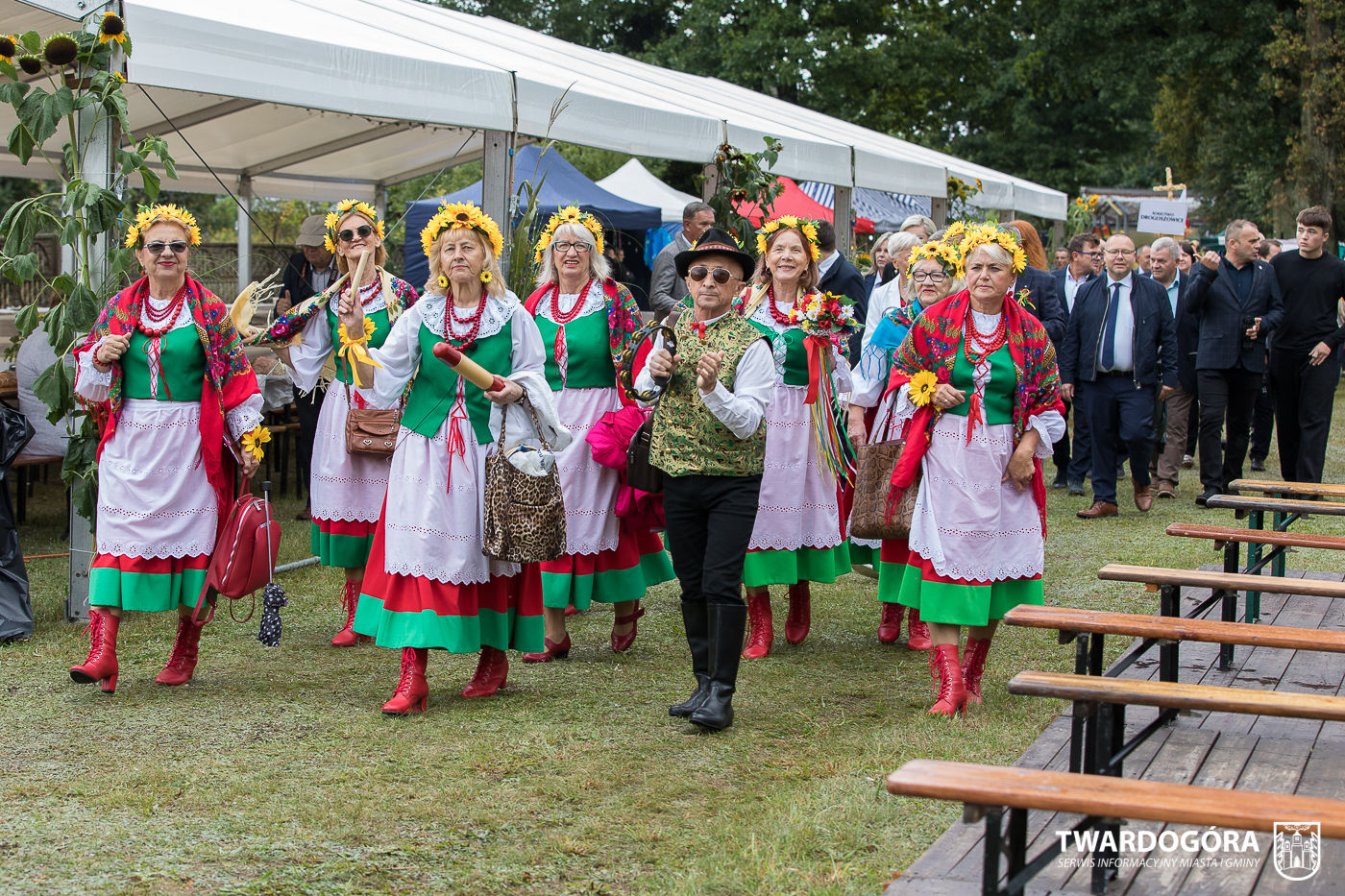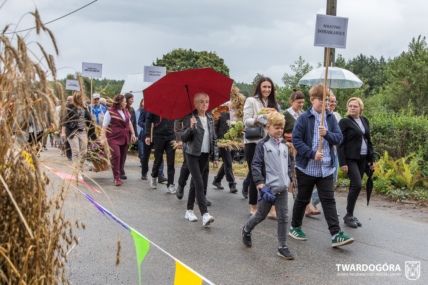 Obchody rozpoczął korowód, który wyruszył spod krzyża w Drogoszowicach. Na jego czele szli Starostowie Dożynek – Irena i Andrzej Zarówni, a także gospodarz wydarzenia, Burmistrz Miasta i Gminy Twardogóra Paweł Czuliński. Korowód prowadziła kapela Twardograje, radny Rady Miejskiej w Twardogórze Daniel Nicpoń, który kierował traktorem oraz Zespół Pieśni i Tańca Skorynianie działający przy Twardogórskim Pałacu Kultury – Centrum Aktywności Społecznej. Wśród uczestników nie zabrakło delegacji poszczególnych sołectw, działkowców, pszczelarzy, wędkarzy oraz przedstawicieli Oddziału Rejonowego Polskiego Związku Emerytów, Rencistów i Inwalidów w Twardogórze. Razem z nimi maszerowali przedstawiciele gminnego samorządu oraz jednostek organizacyjnych.