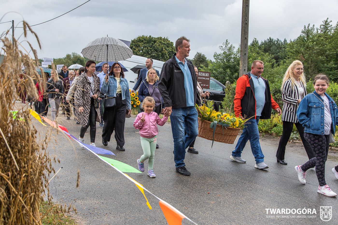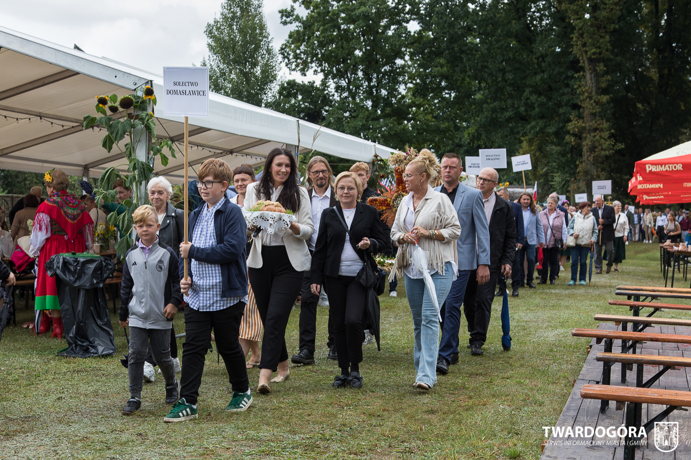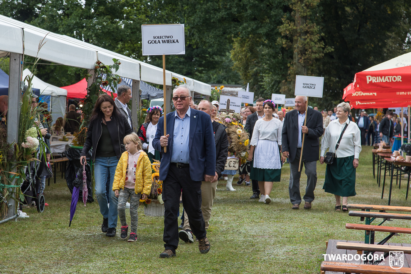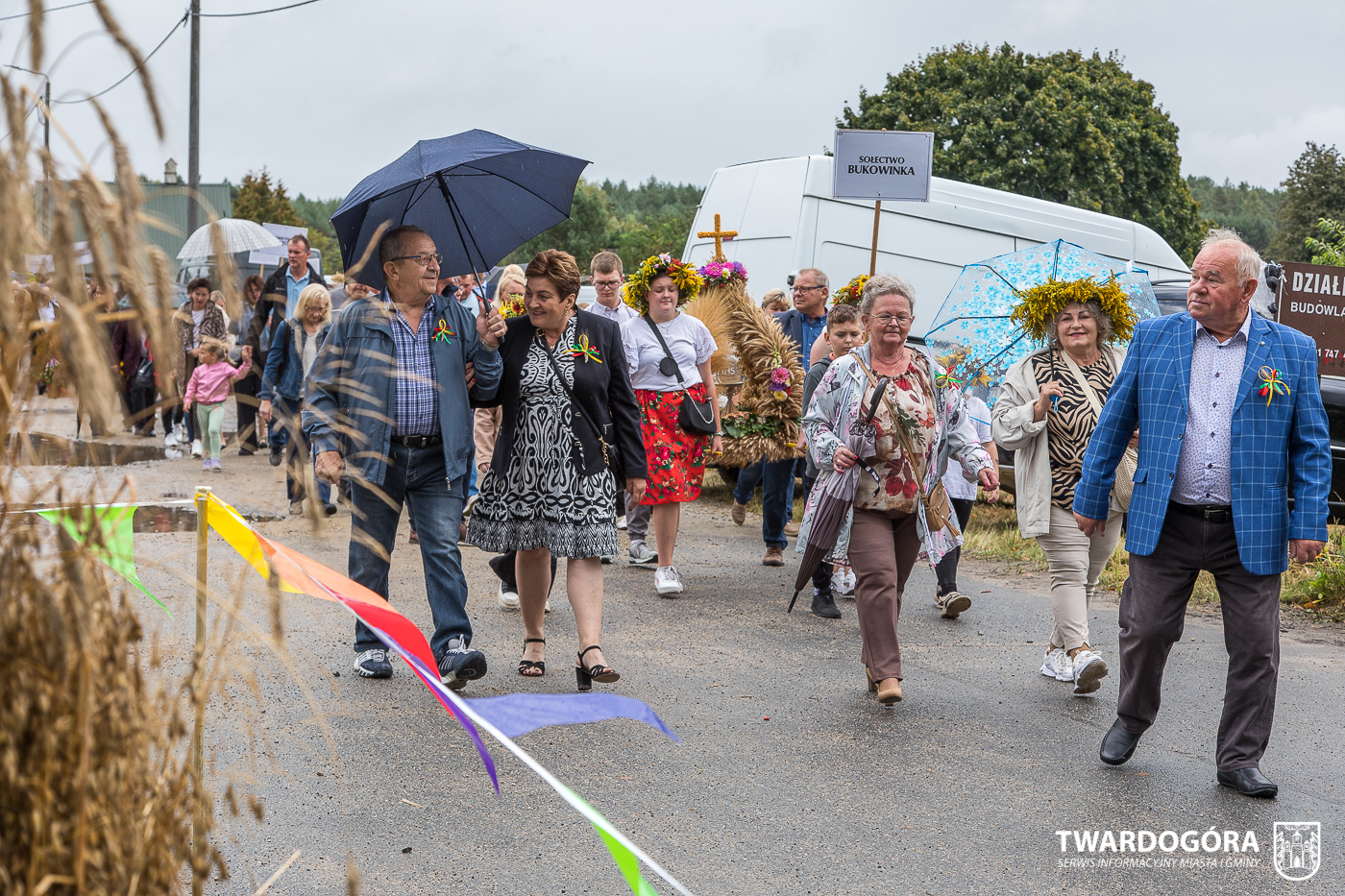 Obchody rozpoczął korowód, który wyruszył spod krzyża w Drogoszowicach. Na jego czele szli Starostowie Dożynek – Irena i Andrzej Zarówni, a także gospodarz wydarzenia, Burmistrz Miasta i Gminy Twardogóra Paweł Czuliński. Korowód prowadziła kapela Twardograje, radny Rady Miejskiej w Twardogórze Daniel Nicpoń, który kierował traktorem oraz Zespół Pieśni i Tańca Skorynianie działający przy Twardogórskim Pałacu Kultury – Centrum Aktywności Społecznej. Wśród uczestników nie zabrakło delegacji poszczególnych sołectw, działkowców, pszczelarzy, wędkarzy oraz przedstawicieli Oddziału Rejonowego Polskiego Związku Emerytów, Rencistów i Inwalidów w Twardogórze. Razem z nimi maszerowali przedstawiciele gminnego samorządu oraz jednostek organizacyjnych.