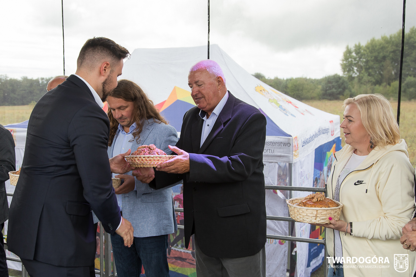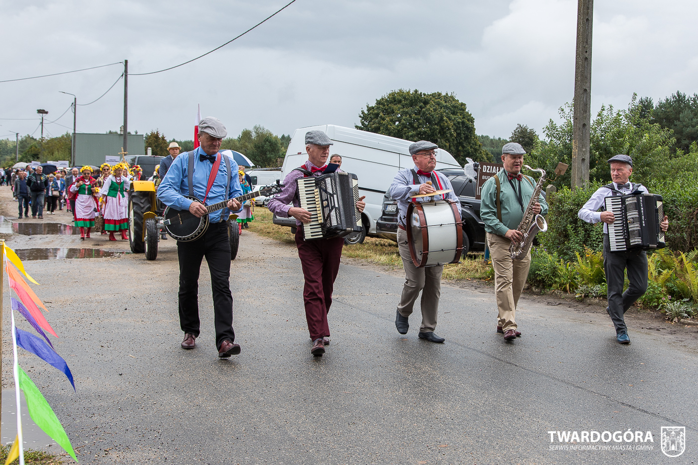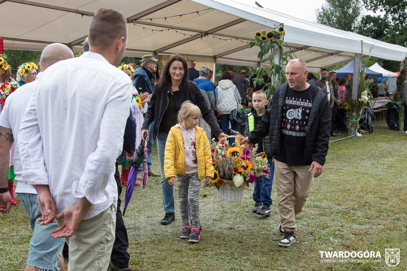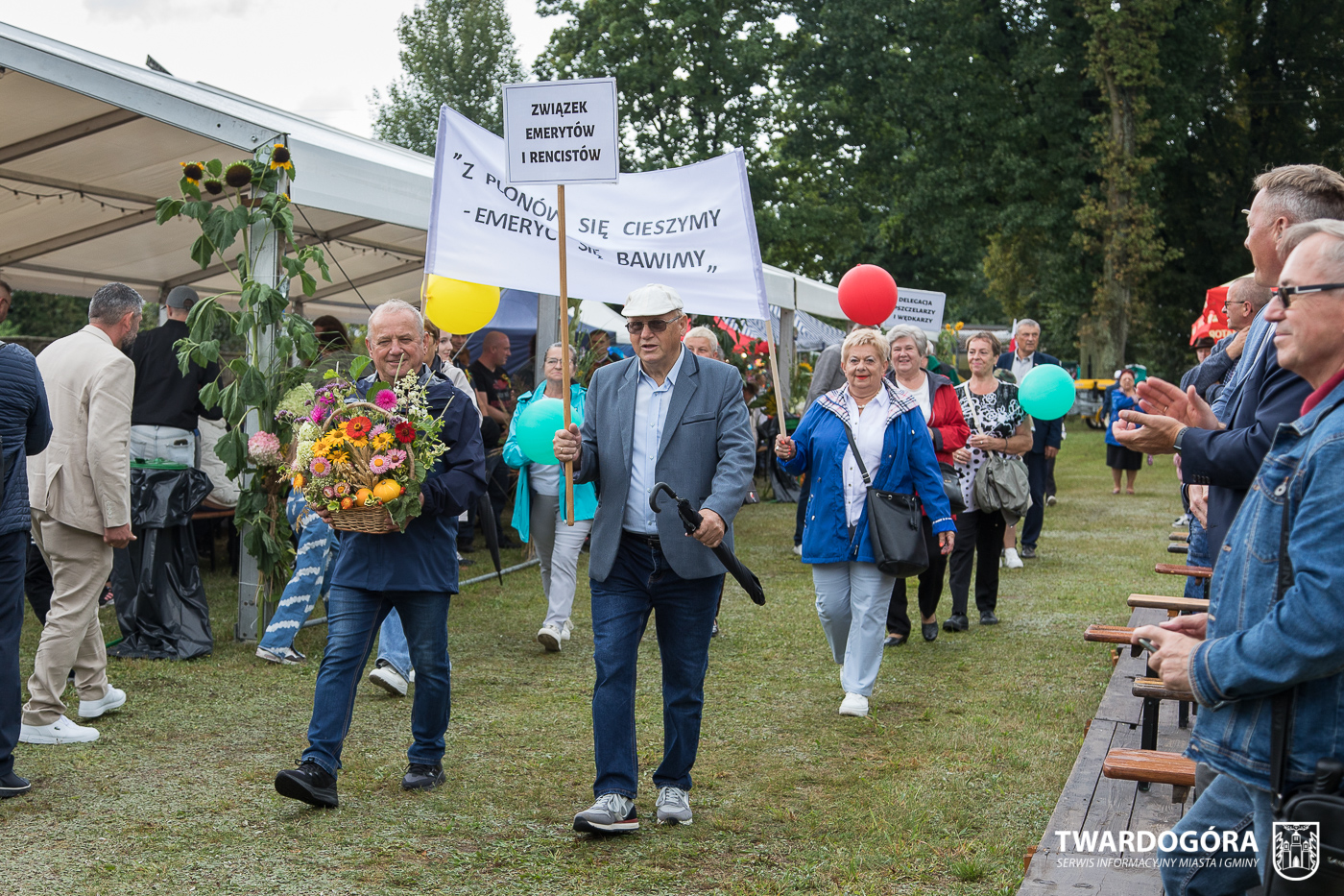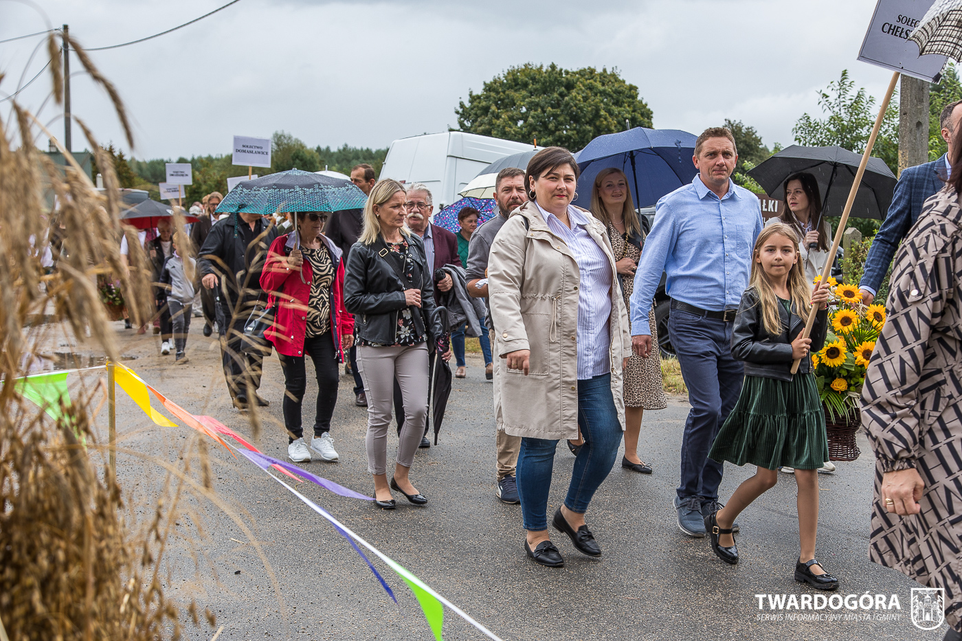 Obchody rozpoczął korowód, który wyruszył spod krzyża w Drogoszowicach. Na jego czele szli Starostowie Dożynek – Irena i Andrzej Zarówni, a także gospodarz wydarzenia, Burmistrz Miasta i Gminy Twardogóra Paweł Czuliński. Korowód prowadziła kapela Twardograje, radny Rady Miejskiej w Twardogórze Daniel Nicpoń, który kierował traktorem oraz Zespół Pieśni i Tańca Skorynianie działający przy Twardogórskim Pałacu Kultury – Centrum Aktywności Społecznej. Wśród uczestników nie zabrakło delegacji poszczególnych sołectw, działkowców, pszczelarzy, wędkarzy oraz przedstawicieli Oddziału Rejonowego Polskiego Związku Emerytów, Rencistów i Inwalidów w Twardogórze. Razem z nimi maszerowali przedstawiciele gminnego samorządu oraz jednostek organizacyjnych.