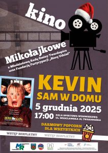 Wspólnie z Młodzieżową Radą Gminy Twardogóra oraz Fundacja Partycypacji Biorę udział zapraszamy na bezpłatny seans filmu „Kevin sam w domu”, który odbędzie się w piątek, 5 grudnia o godz. 17:00 w hali sportowo-widowiskowej Gminny Ośrodek Sportu i Rekreacji w Twardogórze.